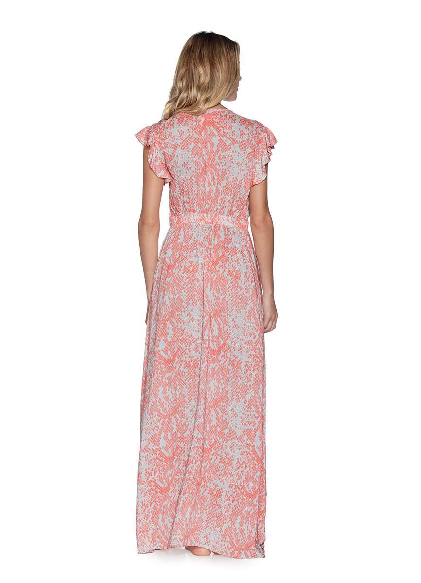 A weekend in the Hamptons calls for a unique look like our Snake Bite beach dress. Wear it as a cover-up or as a dress, you’ll be ready for all the weekend has in store. This animal print long dress features a sexy front slit, plunging neckline, and ruffle sleeves. Pair it with swimsuits in the Starfish Gaze Collection.